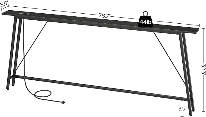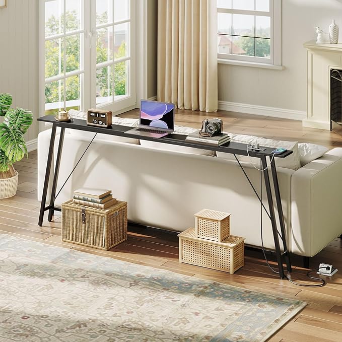 • Narrow Console Table with Charging Station: This sofa tables narrow long comes with 2 standard sockets, 2 USB ports and a 4.9-foot power cord, eliminating the need to search for a power supply. It can efficiently charge your desk lamps, mobile phones and more