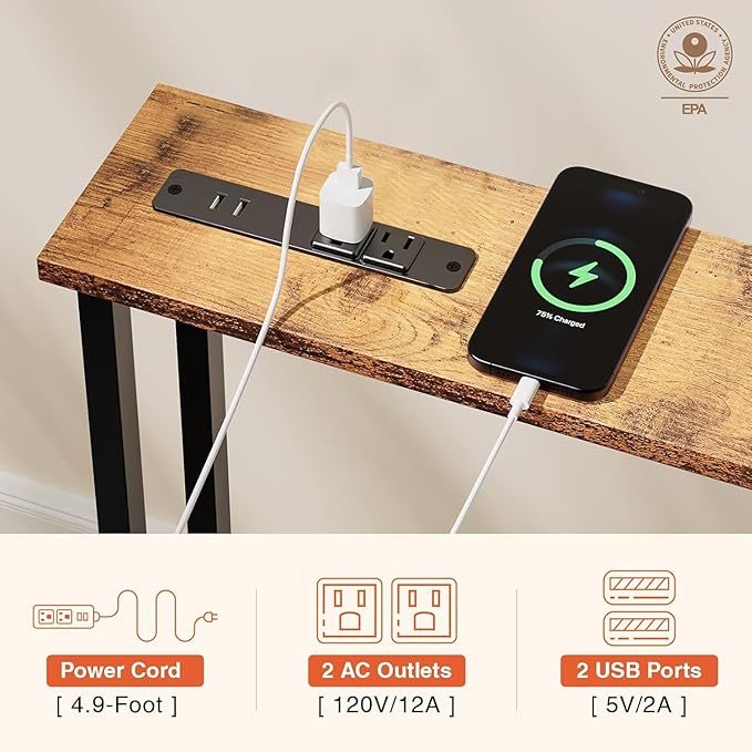 • 【Multi-Functional Sofa Table】Equipped with 1 standard 120VAC outlets, 2 AC Plugs & 2 USB Ports, and a 4.9' ft power cord, this sofa table efficiently utilizes space behind your sofa for charging laptops and mobile phones. Its built-in power hub conveniently powers lamps, phones, laptops, and more, making it an ideal choice for various electronic devices including printers and photo printers.