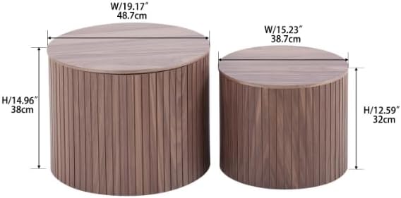 Round Coffee Table Set of 2 for Living Room, Wood Small Nesting Tables with Storage, Circle Side Table, Modern Accent End Table with Moveable Lid for Bedroom,Walnut