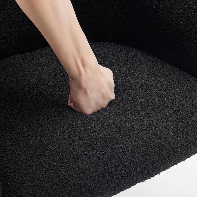 • Upholstered Sherpa Chair- Manufactured using soft teddy fabric and metal legs, It's available in either black or white and the seat cushion features extra padding for additional comfort. Upholstered in durable textured polyester. Legs end with plastic foot pads.