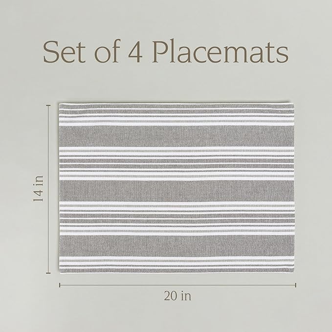 Over&Back Set of 4 Woven Placemats - Colorful Dining Table Mat - 100% Cotton - Machine Washable - Kitchen and Home Decor - Grey - 14" L X 20" W