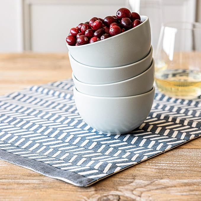 Over&Back Set of 4 Hand-Blocked Placemats - Colorful Dining Table Mat - Each Placemat is Unique - 100% Cotton - Machine Washable - Kitchen and Home Decor - Blue Herringbone