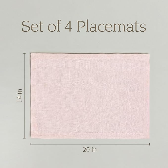 Over&Back Set of 4 Washed 100%-Linen Woven Placemats - Colorful Dining Table Mat - Machine Washable - Kitchen and Home Decor - Pink