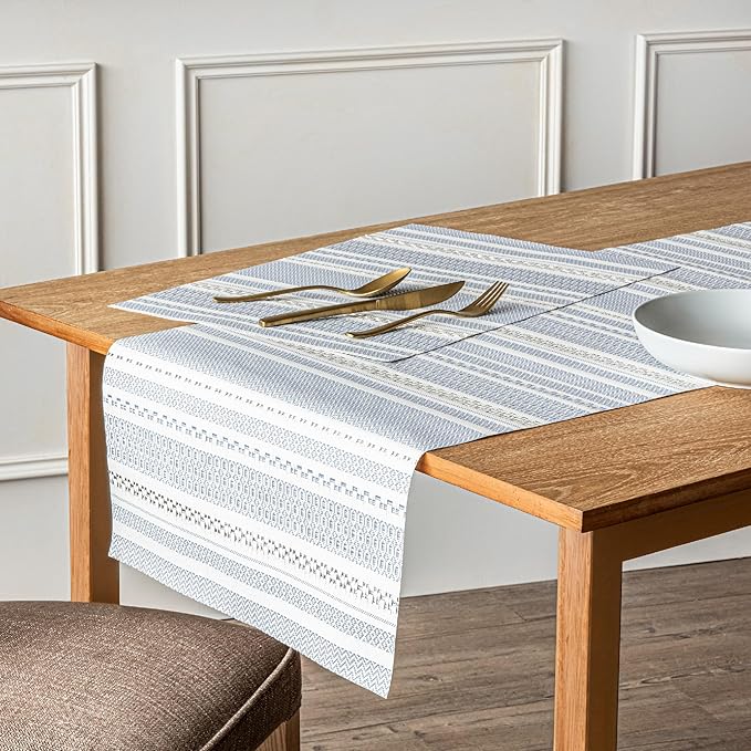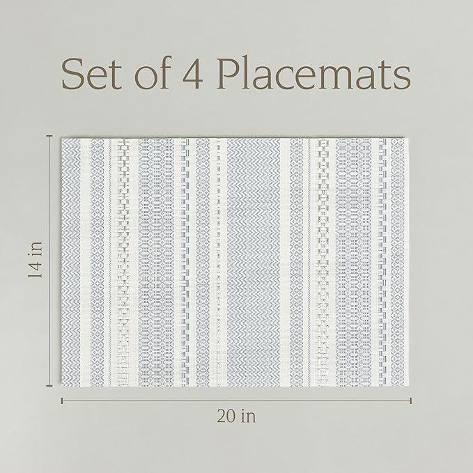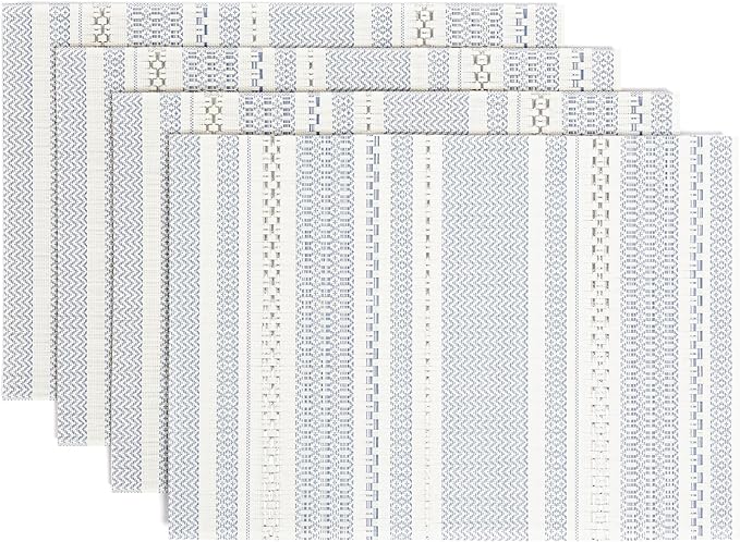 Over&Back Set of 4 Reversible Woven Placemats - Colorful Dining Room Table Mat - UVA/UVB-Proof Polypropylene - Indoor and Outdoor Kitchen and Home Decor - Striped - Blue - Rectangle