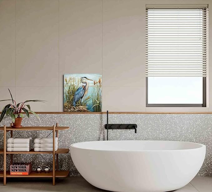 YUEYARIT Bathroom Decor ardea herodias Wall Art Ocean Theme Blue sea Picture Heron Canvas Print Modern Coastal Artwork Framed Hanging Dining Office Living Room