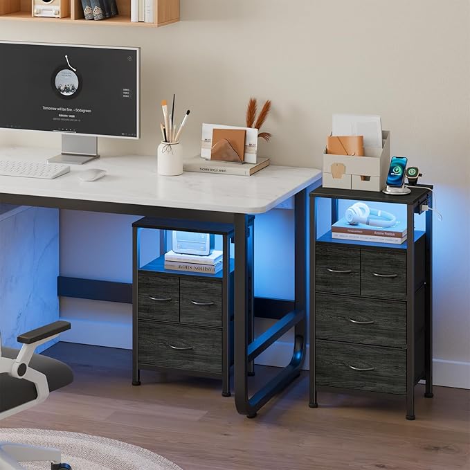 • 【Fabric Drawer & Wood Shelf】: The bedroom nightstand features 3 spacious drawers made of lightweight and durable fabric. These drawers provide ample storage space for organizing clothes, toys, accessories, and more. The fabric material ensures safety, preventing pinched hands and making it friendly. Additionally, the two-tier open shelf with a sturdy wood top offers a hard surface for placing a desk lamp, alarm clock, books, or any other essentials.