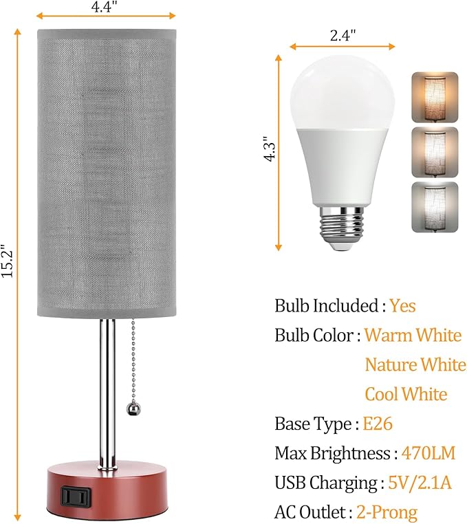 • Table Lamp with Pull Chain: The Bedside Table Lamp comes with a stylish pull chain to control the lamp, you can easy to turn on or turn off the light by pulling the chain, even in the darkness
