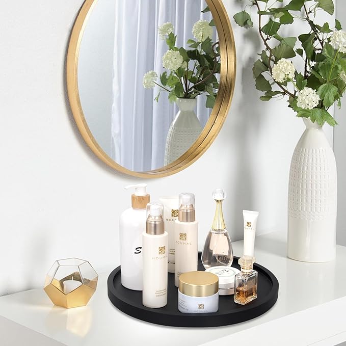Black Wooden Lazy Susan Turntable Organizer Cabinet Round Bathroom Vanity Rotating Tray 10" Small Lazy Susans for Dining Table Top Kitchen Countertop Decor Tray Wood Lazy Susan Coffee Bar Accessories