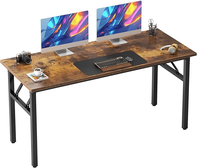 Need Folding Desk, 54 inch Large Computer Desk for Home Office, No Install Needed Study Student Writing Table Desk Workstation, Rustic Brown