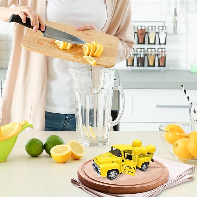 • EXQUISITE CREATIVE GIFT: This is a lemon decor farmhouse pickup truck that touches everyone's dreams and carries the meaning of a romantic journey. Perfect to decorate your space, classic country summer style home decor, perfect as a housewarming gift for collectors, car enthusiasts and friends