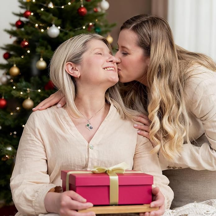 Iefil Christmas Gifts for Women - Double Heart Birthstone Necklace, 925 Sterling Silver Heart Pendant Necklace, Anniversary Birthday Gifts for Women | Personalized Jewelry Gift for Wife Mom Girlfriend