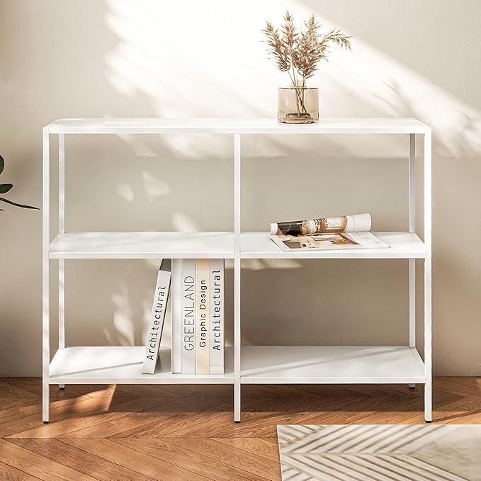 HDANI 39.4 Inch Metal Console Table with 3 Tier Strage Shelves,Narrow Entryway Table,Modern Sofa Tables for Entryway, Living Room,Bedroom,White