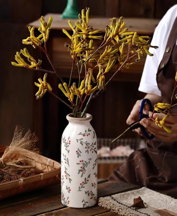 Ceramic Rustic Farmhouse Vase, Holly Pattern Flower Vase for Home Decor, Ideal Shelf Decor, Boho Vase for Living Room Bedroom Kitchen Office Decor Centerpiece Table Decorations (7.8 inches)…