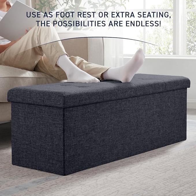 Ornavo Home 43 Inch Folding Storage Ottoman, Long Large Storage Ottoman Chest, Foot Rest Stool, Bedroom Bench - (Black)