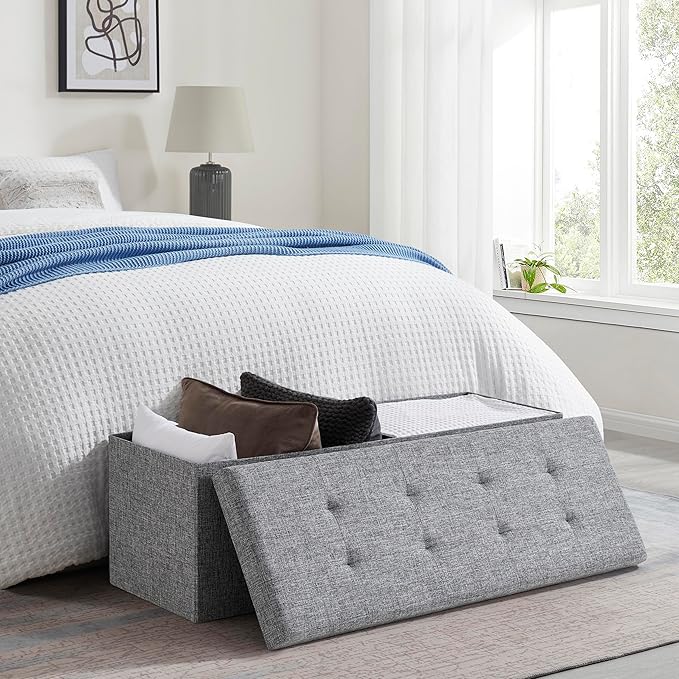 Ornavo Home 43 Inch Folding Storage Ottoman, Long Large Storage Ottoman Chest, Foot Rest Stool, Bedroom Bench - (Gray)