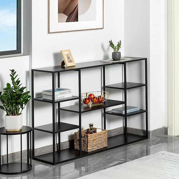 • Unique geometric design: measured in inches high and equipped with shelves of different levels, suitable for plants, books, decorations, etc. of different heights. It provides 8 open storage spaces that can beautifully display decorations while maintaining clutter - and this foyer table features a narrow and long design that won't take up too much room space.