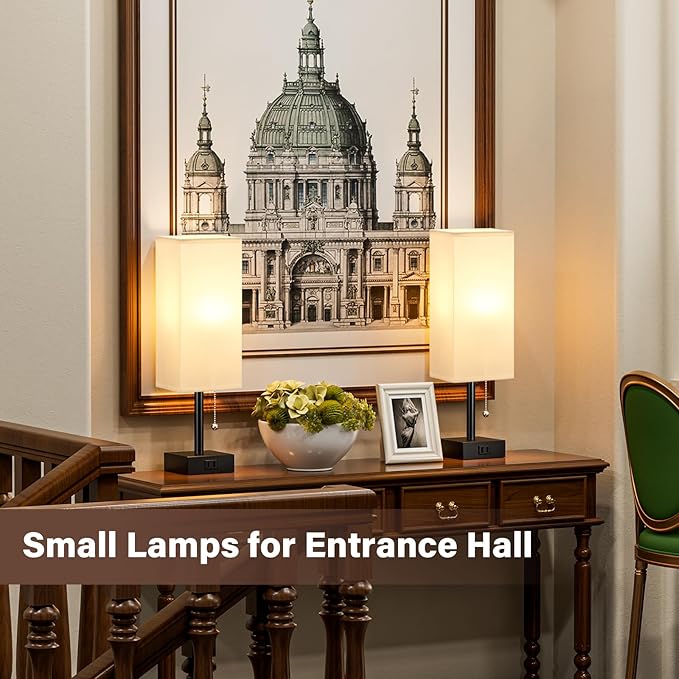• 4. Plug and Play Chic Bedroom Lamps Set - Package included 2pcs non-flicker FREE E26 led light bulb (worth $15), 2pcs install-free square white flaxen fabric shade, 2pcs stable lamp body and classic black metal base. Put all together for a minimalism classic lamp is really perfect to decorate anywhere of your house. An ideal tableside lamp for bedroom, guest room, living room, study room, kids room, college dorm room for girls and boys, office room, desk, etc.