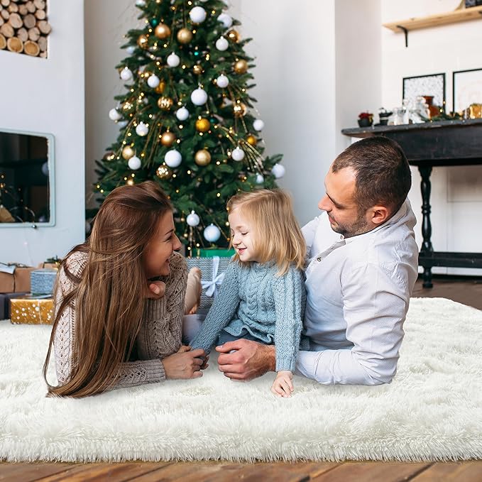 8x10 Large Area Rugs for Living Room, Ultra Fluffy Shag Rug for Bedroom, Modern Plush Soft Carpet for Girls Boys Kids Room Dorm Fuzzy Non Slip Rug for Home Decor Aesthetic, Cream White