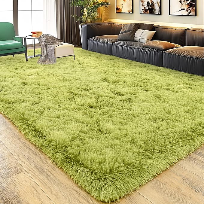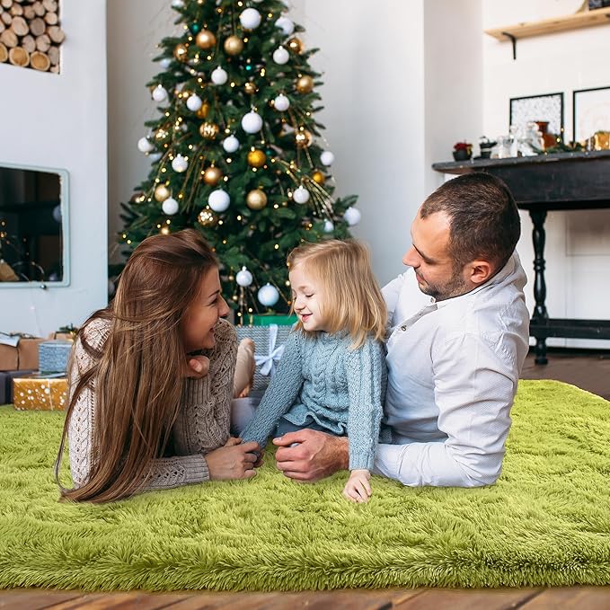 Ultra Fluffy Area Rugs for Living Room Bedroom, 6x9 Fuzzy Large Living Room Rugs, Thick Shag Rug for Dorm, Soft Non Slip Kids Girls Boys Rug for Home Decor Aesthetic, Green