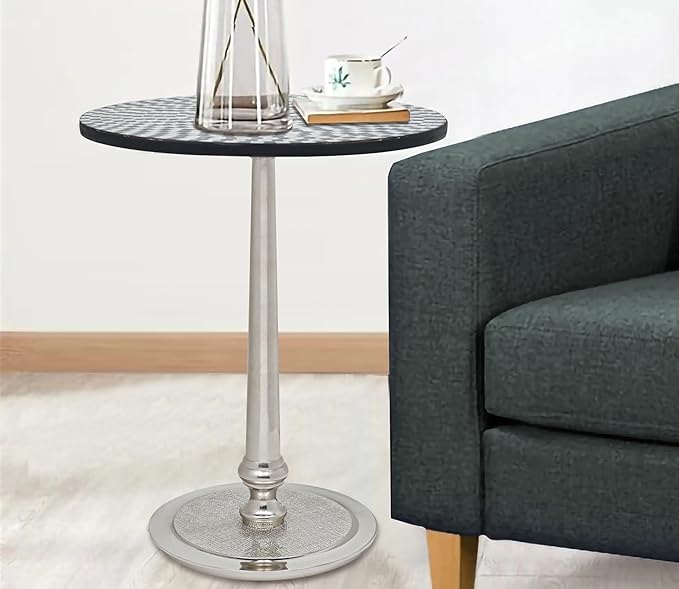• ✅ COMPACT SIZE : Compact 15 x 15 x 21 inch accent table for stylish small spaces. Features a round mosaic top measures 15 Inches & Silver pedestal base.