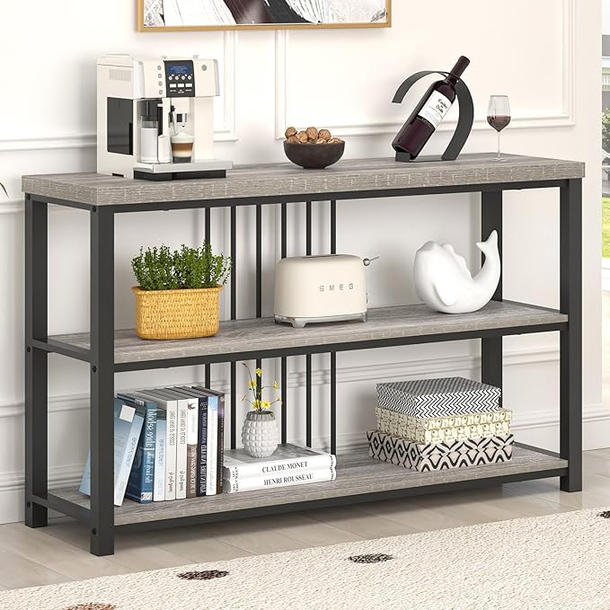 • 3-Tier Storage Space: 3-tiered shelves designed for displaying books, decorative items, framed photos or plants, providing ample storage while maintaining a tidy living space. Console table with storage, suitable for small spaces, minimizing space usage