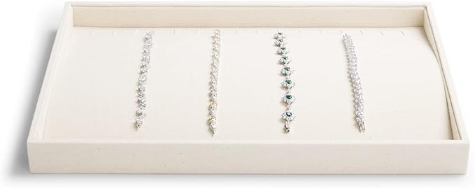 Linen Jewelry Trays 16 Slots Necklace Bracelet Display Tray Jewelry Drawer Organizer Necklace Bracelets Watch Storage Holder (Beige)