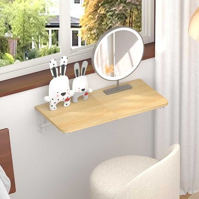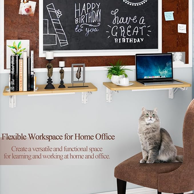 TEAMIX Wall Mounted Folding Table, Floating Desk for Small Spaces, Drop Leaf Dining Table for Kitchen Fold Down Laundry Shelf with Heavy-Duty Brackets