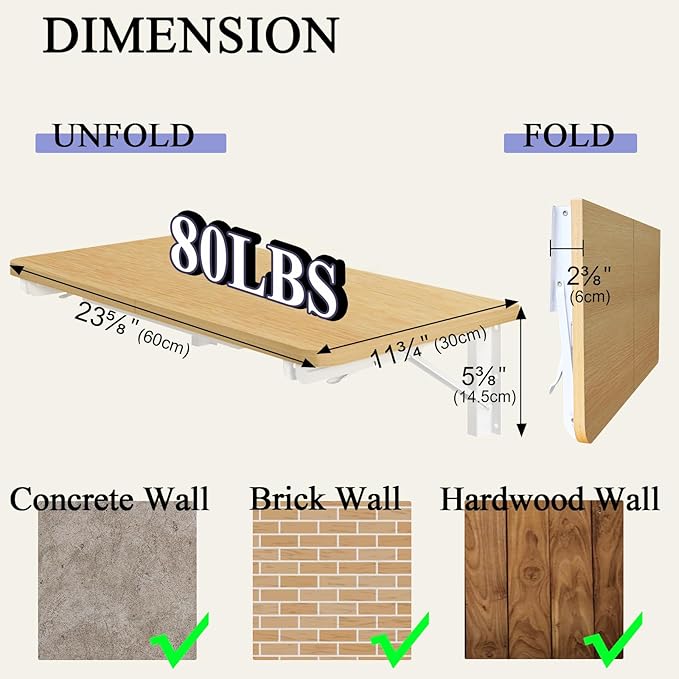 • 【Easy and Convenient to Use】Simply lift up the desk board when you need it, and you'll have a 23.6*11.8 inches workspace. When not in use, fold it down and it's only 2 3/8 inches (6cm) thick, saving space.