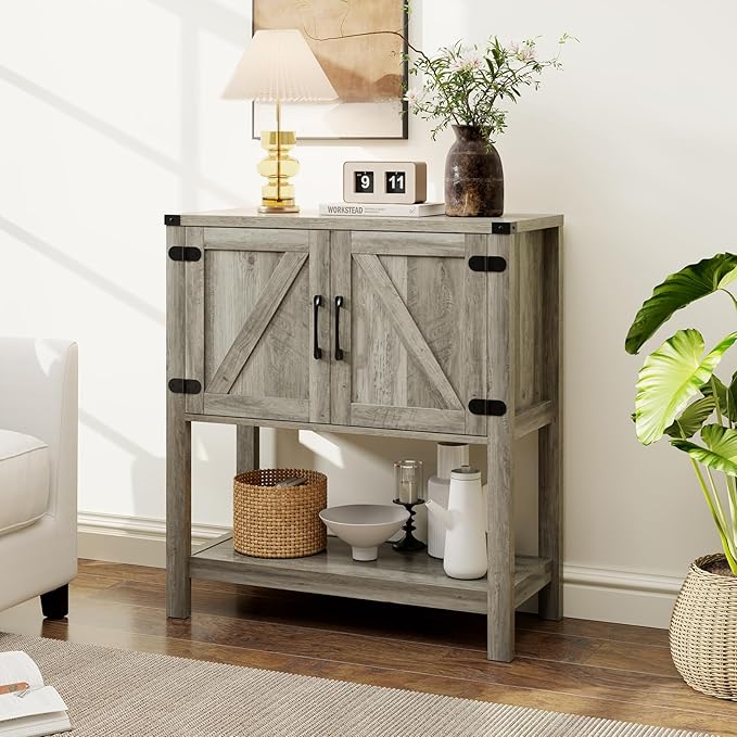 Console Table with 2-Door Cabinet Coffee Bar Cabinet Sofa Table,Entryway Table with Storage, Farmhouse Buffet Sideboard (Grey)