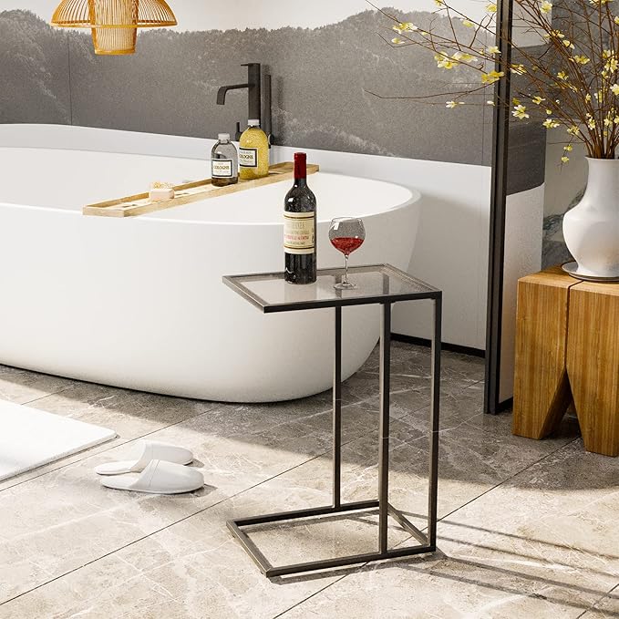 • [Easy Assembly& Clean] Easy-to-understand instructions, detailed numbered parts, and simple side table easy-to-follow instructions allow you to finish the assembly of this sofa side table assemble in 10 minutes. The surface of the glass are easy to clean,Keep your couch side table tabletop nice and clean. Simple yet elegant lines representing the current fashion trend.