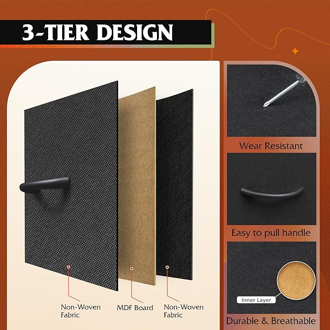 • 【✨ Durable Quality Material】The drawer consists of 3 layers of high-quality fiberboard, easy-to-clean and breathable non-woven fabric, the desktop is made of P2 grade artificial wood, scratch resistant and easy to clean, the material process and safety are strictly tested by EPA&SGS, health and environmental protection, excellent quality for you and your family to create a peaceful life!