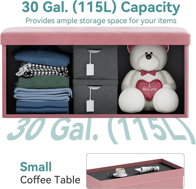 BRIAN & DANY Folding Storage Ottoman Bench, Ottoman with Storage, Foot Rest, Benches Seat for Bedroom, Living Room, Entryway, Long Shoes Bench, 15.7" x 31.5" x 15.7" Hot Pink