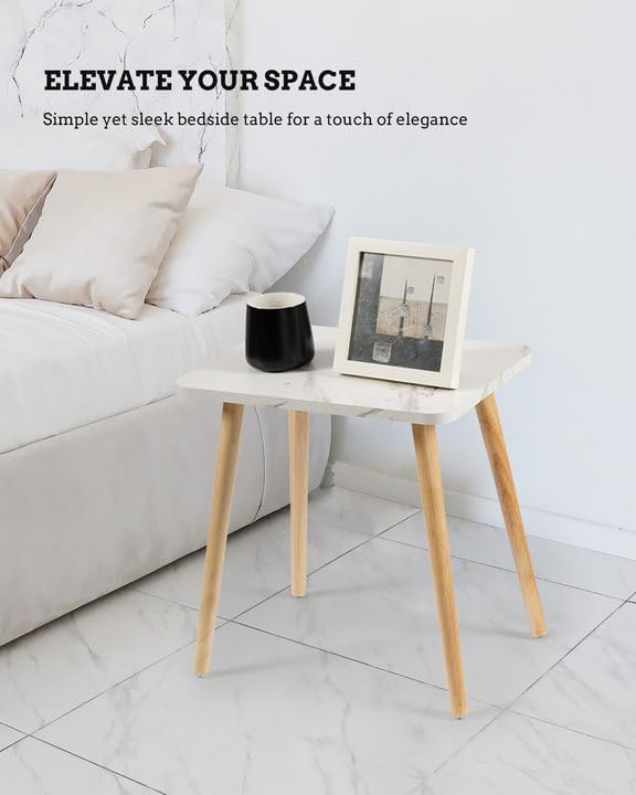 FORAOFUR Small End Table, Side Table Accent Table Living Room Bedroom Balcony Office, Modern Bedside Table Home Decor, Small Table for Small Spaces, Small Coffee Table, Easy Assembly, Marble White