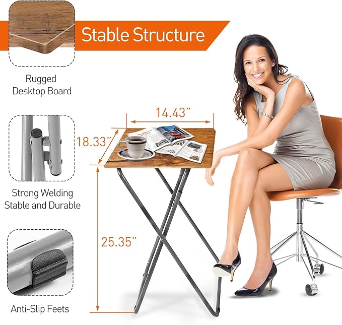 • ✔EASY TO USE: Folding tv tray Table no assembly, just takes a few seconds to unfold the tray table,Portable folding table is light, more convenient for for the elderly, children.