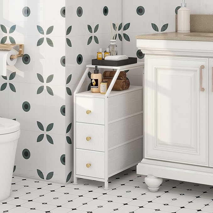 Tohomeor Narrow Dresser Tall Skinny Storage Tower Vertical Slim Chest of Drawers with Charging Station Small Nightstand Side Table for Bedroom, Bathroom, Small Spaces (White, 3 Drawers)
