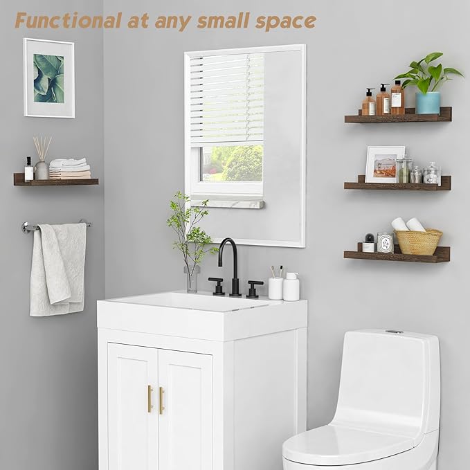 • 【Suitable for All Occasions】The sleek, simple design of wall mounted wooden shelves for wall with lip allow them to match with nearly any aesthetic. The dark wood picture ledge shelf can help to declutter or free up counter space in your playroom to make places much tidier and neater - from using as a picture frame shelf in office to organizing art decor, books, indoor plants, pictures.
