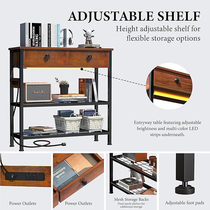 32" Narrow Console/Entryway Table with Storage & 3 Drawers & Outlets, for Sofa & Living Room, Hallway/Foyer/Couch/TV/ Aquarium Stand Table for Entryway with USB Ports, LED Light Strip,Perfect for Home