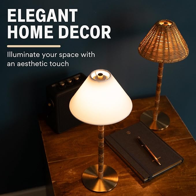 • 【Rechargeable & Cordless LED Table Lamp】 Powered by a 2800mAh rechargeable battery with a USB Type-C charging port (USB-C cable included), this cordless LED table lamp offers 15-24 hours of use on a single charge. Whether placed on a bedside table, used as a centerpiece for outdoor patio dinners, or taken to evening gatherings, this portable wireless lamp enhances any space with both functionality and ambiance.