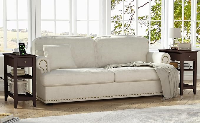 • 【End Table with Charging Station 】With this narrow side table set of 2 achieving charging freedom, this end tables living room includes 2 standard outlets and 2 USB ports can easily charge your desk lamp, cell phone, tablet PC or electrical appliances needs, different plugs that can be used together will save your time, sufficient 6.5 ft cord length for more placement options