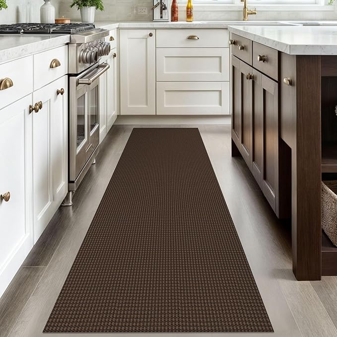 IOHOUZE Washable Runner Rug 2.6x8 Non Slip Rubber Backed Wide Hallway Runner Entryway Runner Indoor, Kitchen Rugs Woven Cotton Floor Carpet for Hall Entrance Bedroom, Brown