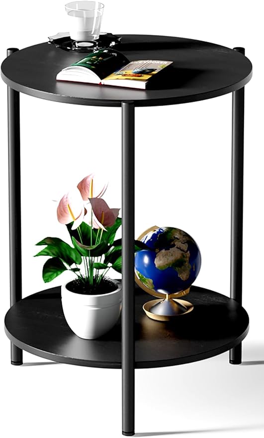 • 【2-Tier Storage】Kasrikly round side table 2-tier open design, perfect for storing books, magazines, and decorative items. The small table measures 15.75"D*21.46"H and has a total weight capacity of up to 40 lbs.