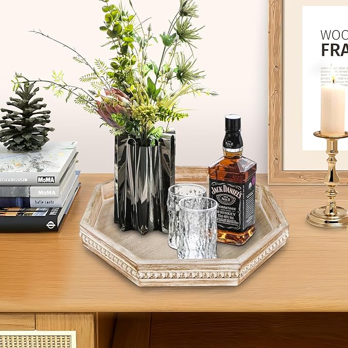 • [Vintage wooden tray]: The wooden tray has a unique design, and the tray is surrounded by resin beads, which is more textured than plastic beads. The surface is polished to retain the wood grain, and matched with White Washed color, it has a natural and vintage feel. Whether it is to greet friends or relatives, this wooden tray can show your elegant taste and bring a warm and fashionable atmosphere to the home environment.