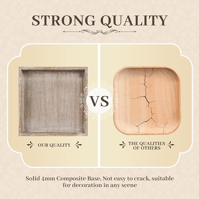 • [Carefully Designed]: He's not an oversized tray just larger than the regular siz, Each farmhouse decorative tray is handmade by skilled craftsmen. Designed to be 1” larger than the usual regular sized trays of 13" x 13" x 1.6" wooden tray is not only more practical but also beautiful to decorate, adding a unique and elegant touch to your home.
