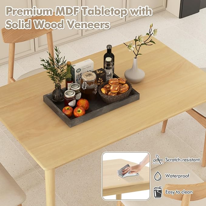 • 【Easy Maintenance & Assembly】: Say goodbye to the hassle of spills and messes with our dining table's premium MDF tabletop with solid wood veneers. The waterproof and scratch-resistant surface makes cleanup a breeze, while the simple structure and clear illustrations in the user’s manual ensure quick and easy assembly.