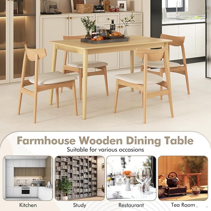Giantex 48-Inch Dining Table with Rubber Wood Legs, 220 LBS Capacity, Farmhouse Rectangular Dinette Table for Dinner, Small Space, Apartment, Dining Room Table, Kitchen, Natural