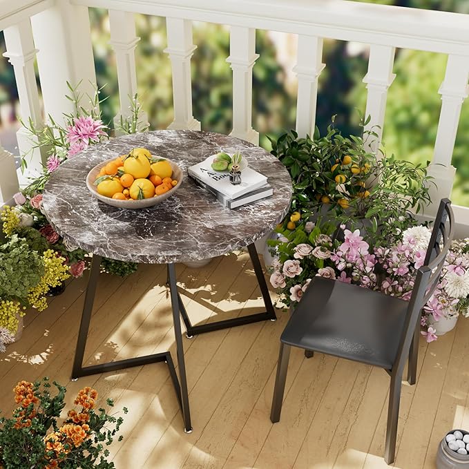 • Modern & Simple Stylish - A great look for this dining table set is indispensable. This faux marbled-looking with a solid steel structure will blend perfectly into your living room and kitchen, bringing simplicity and elegance.