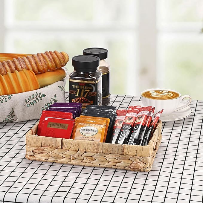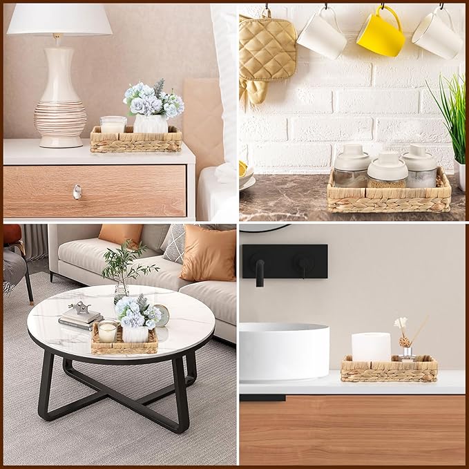 • Decorative Vanity Tray: Features a natural beauty and unique appearance, the natural wicker tray display the natural colors and textures of the water hyacinth, adding a touch of cozy, nature and harmony to any rooms while help you easy to organize different kinds of stuff