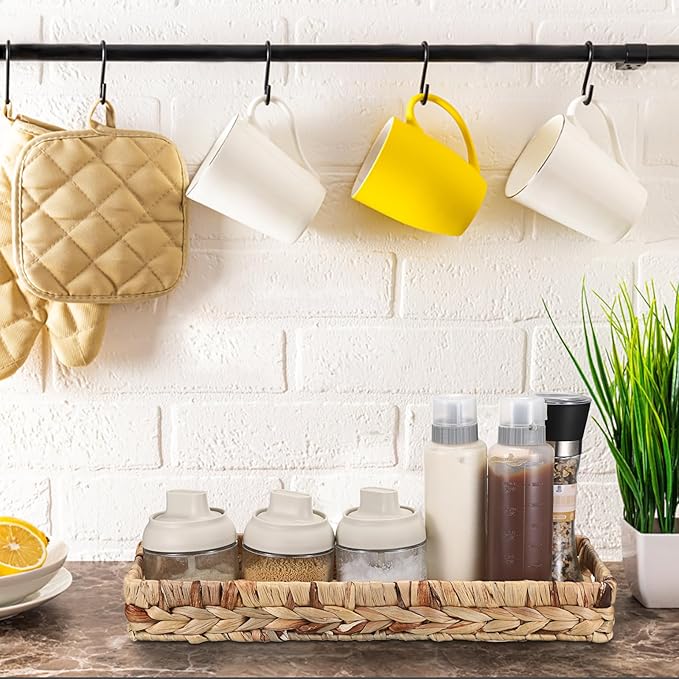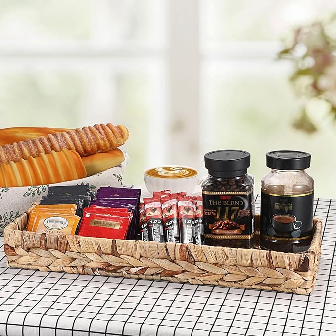 • Decorative Vanity Tray: Features a natural beauty and unique appearance, the natural wicker tray display the natural colors and textures of the water hyacinth, adding a touch of cozy, nature and harmony to any rooms while help you easy to organize different kinds of stuff