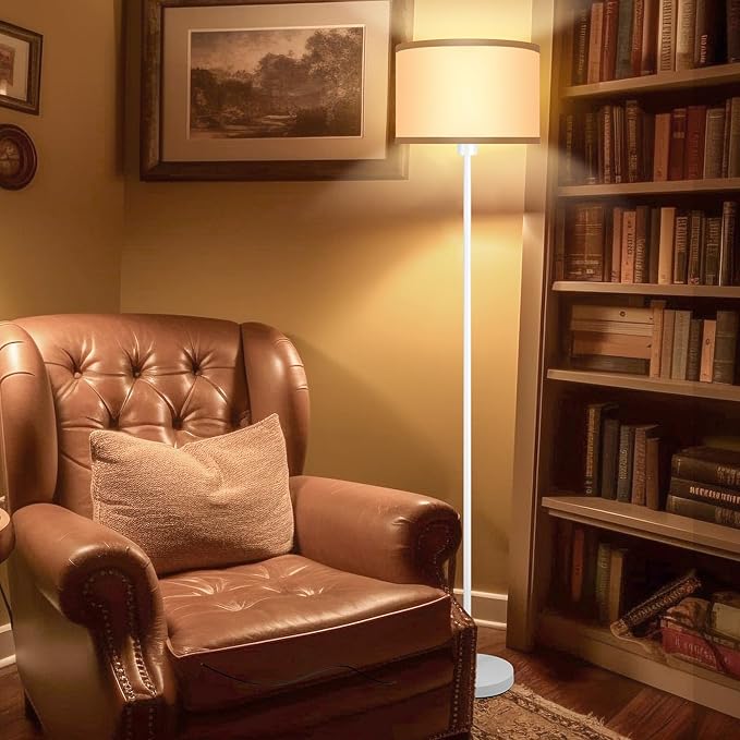 • 【Foot Switch and Compatible with smart devices】The LED floor lamp for the bedrooms is controlled by a foot pedal, which is easy to turn on/off when you lay on the sofa or bed, and gives the lamp with shade simple outlook; To keep path with smart lifestyle, you can plug this standing lamp in the smart device(not included), add it to your home appliances group, and easily controlled it by your phone; intelligent design help you enjoy easier life and home automation