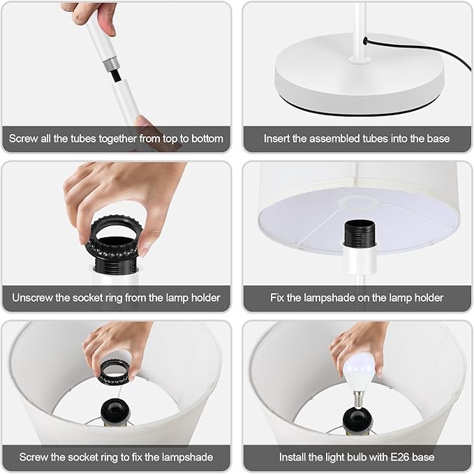 • 【Easy Assembly & Premium Quality】Made with white metal body and white linen lampshade, the boho floor lamp is simply designed and look good in any surroundings; With the 6lb sturdy base, this 59-inch (5ft) tall lamp stands steadily and won't tip over easily, which is safe for kids; Without tools required, you just need to screw all the parts together to finish the assembly of this standing lamp; PS. The assembly video is attached to the product page